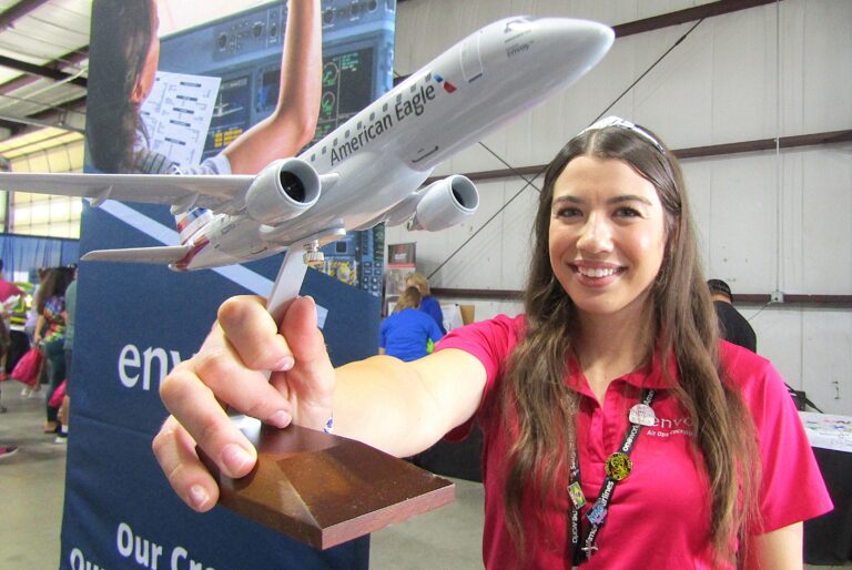 As young girls attended the Girls in Aviation Day celebration on Saturday, Sept. 20, one of the first items they came across was a cardboard frame that was used as a photo prop. The top of the cardboard said: “I…