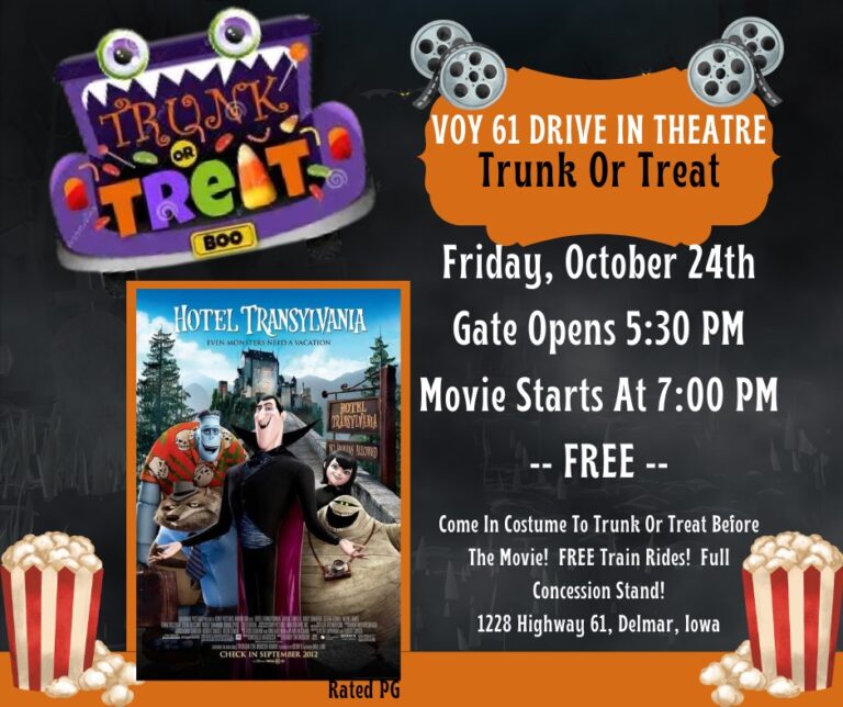 MAQUOKETA, Iowa – The Voy 61 Drive In Theatre will be hosting its first free Trunk Or Treat & Movie on Friday, Oct. 24. The Voy 61 is at 1228 Highway 61, Delmar, Iowa, and near Maquoketa. During the event,…