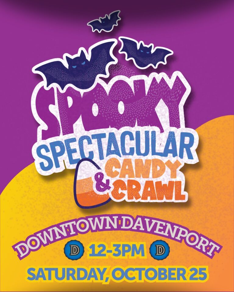 Downtown Davenport will host a “spine-tingling stroll” for Halloween on Saturday, Oct. 25, from noon to 3 p.m. The event, presented by the Downtown Davenport Partnership, will feature treats, photo opportunities and “festive surprises” at participating businesses. “The spooky season…