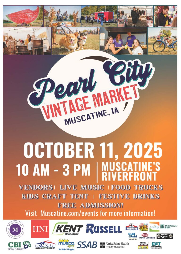 MUSCATINE, Iowa – The 5th annual Pearl City Vintage Market, presented by the Greater Muscatine Chamber of Commerce & Industry (GMCCI), will take place Saturday, Oct. 11, from 10 a.m. to 3 p.m. along the city’s riverfront. The free event…