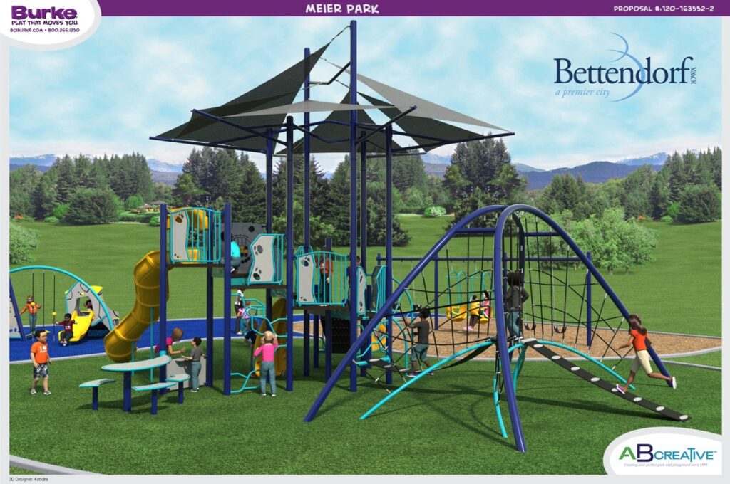 This project is funded within the city’s Community Improvement Program (CIP) in FY2023. On April 18, the Bettendorf City Council approved a purchase order to ABCreative to buy and install the equipment, which is made by BCI Burke Company, LLC and has been used in several other city parks.