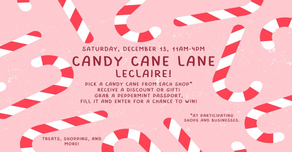 LECLAIRE – Candy Cane Lane LeClaire will be held here from 10 a.m. to 4 p.m. Saturday, Dec. 13.