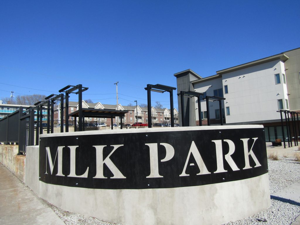 The park, located in a former vacant lot at the corner of Brady and Fifth streets and next to the MLK Interpretive Center, was built in honor of the late civil rights leader Dr. Martin Luther King Jr.