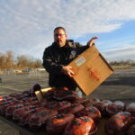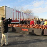 Hy-Vee officials and area first responders handed out 570 free hams at the Mississippi Valley Fairgrounds, in Davenport, as part of Hy-Vee’s collaborative effort with Hormel Foods called “Hams for the Holidays.” (A similar giveaway was held at the fairgrounds in April 2022.)