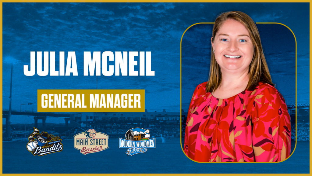 Ms. McNeil takes the helm as the River Bandits enters its 2025 season marking its fifth season as the High-A affiliate of the Kansas City Royals and its 65th as members of the Midwest League.