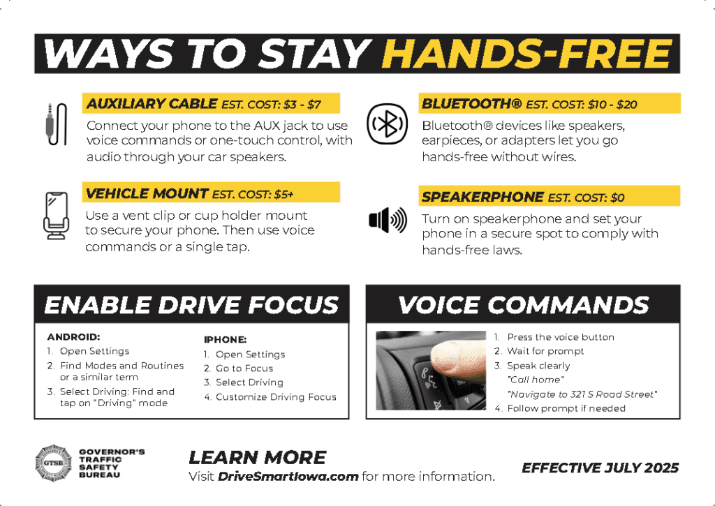 On Jan. 1, 2026 drivers stopped for holding their cellphones while driving will face fines from $100 to $1,000 for violating the law that originally took effect on Jan. 1, 2025. CREDIT STATE OF IOWA