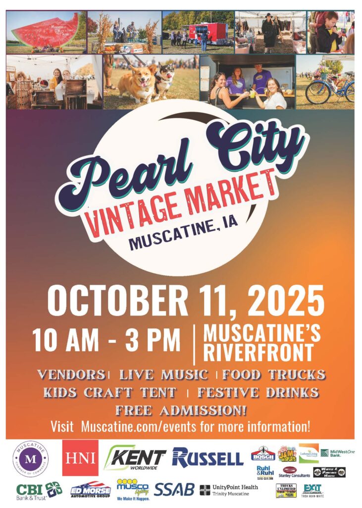 MUSCATINE, Iowa – The 5th annual Pearl City Vintage Market, presented by the Greater Muscatine Chamber of Commerce & Industry…