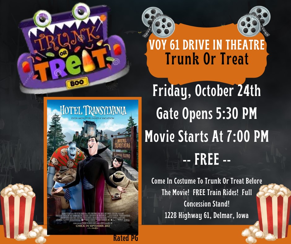 MAQUOKETA, Iowa – The Voy 61 Drive In Theatre will be hosting its first free Trunk Or Treat & Movie…