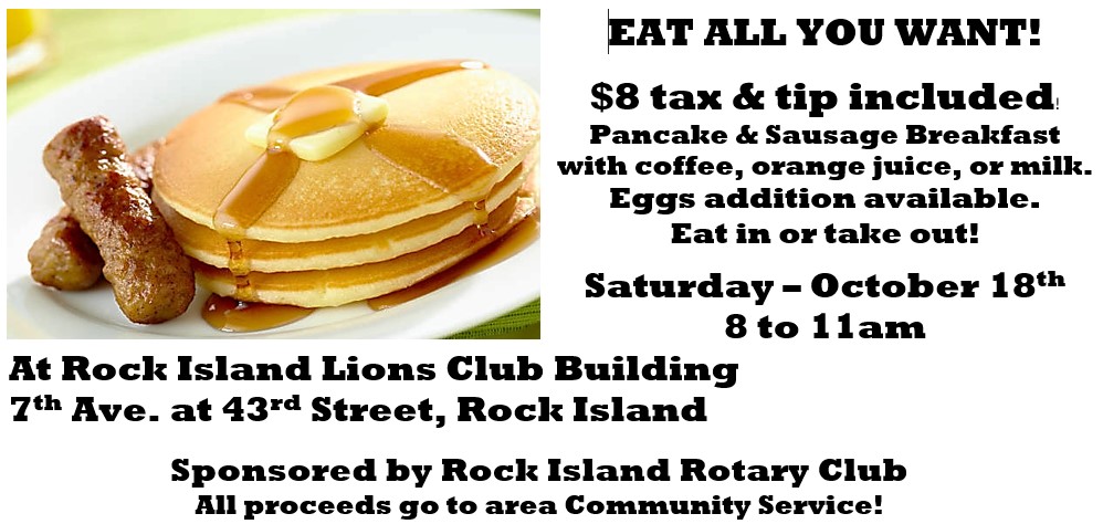 The Rotary Club of Rock Island invites the community to its upcoming Pancake Breakfast, from 8-11 a.m. Saturday, Oct. 18,…